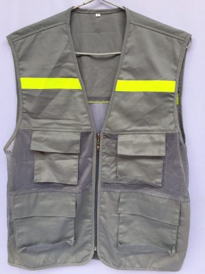 Áo bảo hộ Gile túi hộp màu ghi phản quang vàng