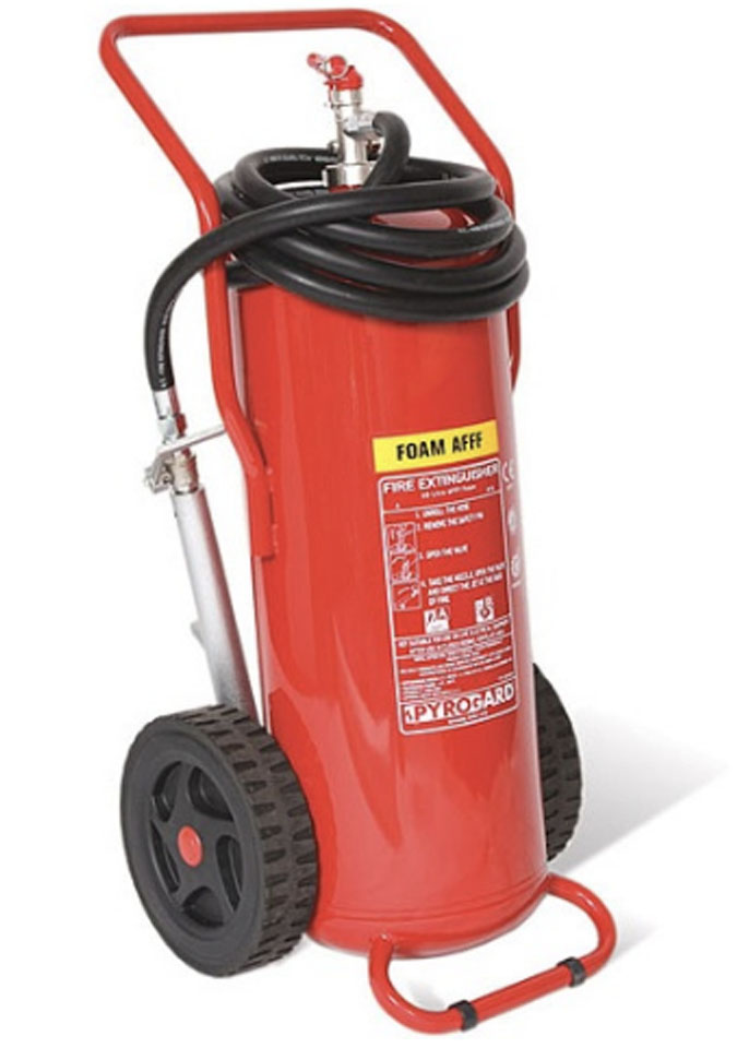 Bình chữa cháy bọt Foam 45 Lít có xe đẩy loại lớn thường dùng để trang bị cho những khu vực rộng có nguy cơ xảy ra xảy ra cháy nổ cao như trạm xăng dầu, xưởng sản xuất, nhà máy chế biến, kho hàng, bến bãi,…Loại bình chữa cháy xe đẩy này có thể chữa cháy tốt cho các loại đám cháy chất rắn, lỏng, khí và cả các đám cháy bắt nguồn từ các thiết bị điện, điện tử. Bọt chữa cháy sau khi xịt vào đám cháy sẽ bám vào các vật thể cháy nên có thể ngăn chặn lửa bùng phát và lan rộng.