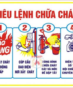 Bộ tiêu lệnh chữa cháy gồm có 2 tấm và được dán ở những nơi thuận tiện nhiều người qua lại. Giúp cho mọi người có thể dễ dàng đọc và hiểu về công tác phòng cháy chữa cháy.