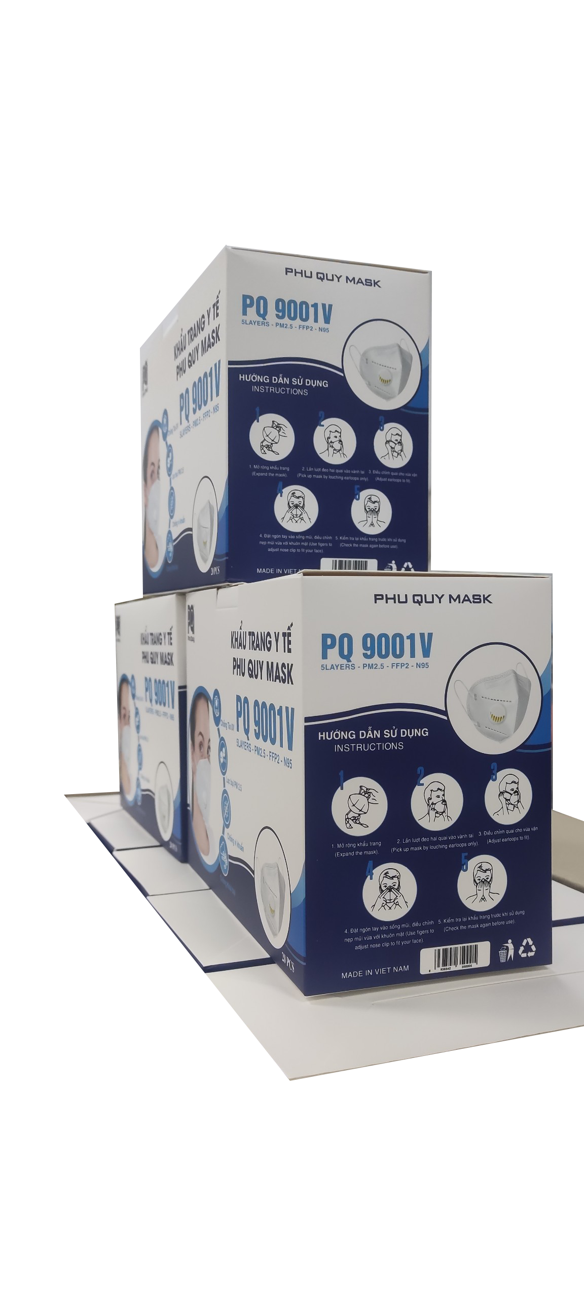 Khẩu trang Phú Quý Mask N95 Có Van Thở thiết kế tiêu chuẩn 5 lớp